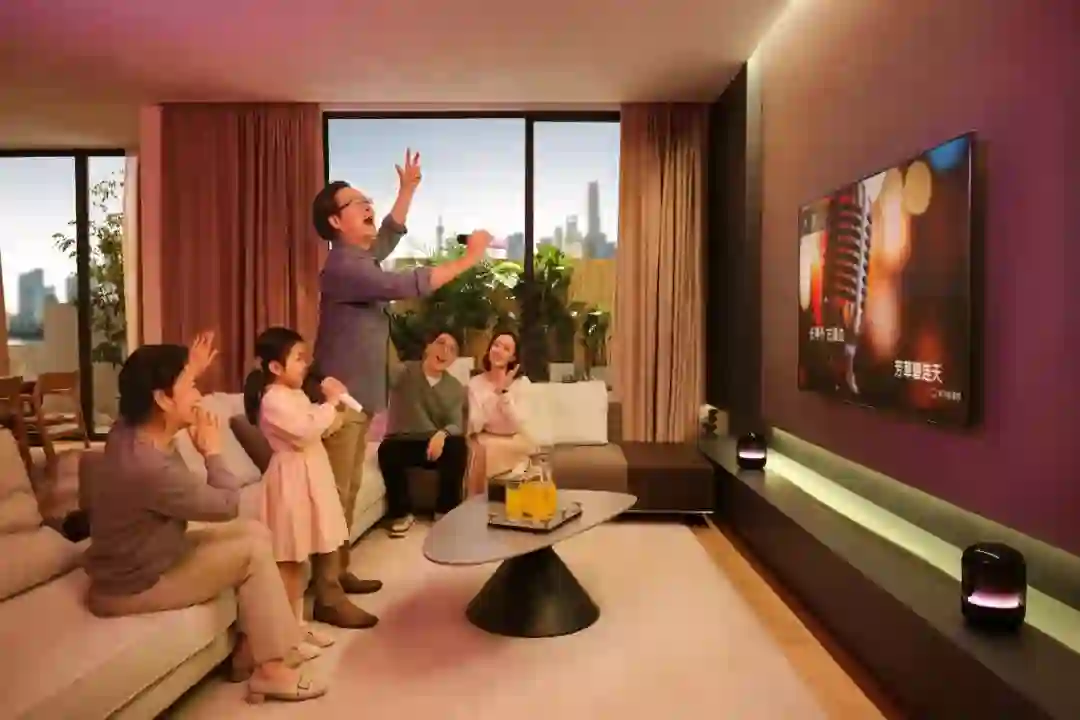 当然,这样的需求势必需要更新的科技产物来承载。试想一下,当影片中的大白鲨冲出水面扑来时,坐在面前观影的你仿佛也听到大白鲨从头顶一跃而过卷起的浪涛。又或者,你一时兴起,拉着家人来了场K歌大赛。甚至是,拿出手机招一招,调出了最新的游戏大作,客厅K歌房无缝衔接成为了游戏竞技场。