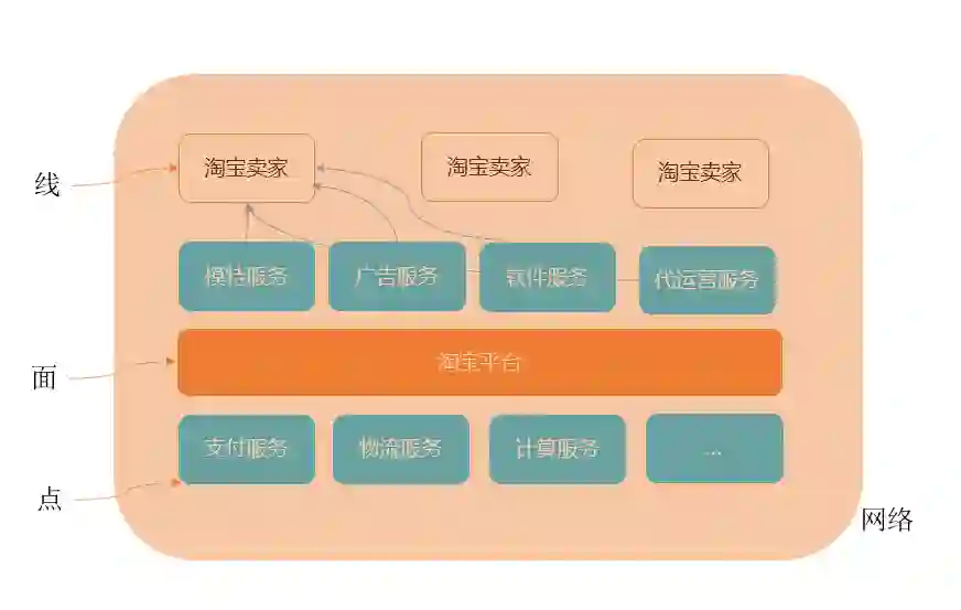 在淘宝平台这个面上,要让淘宝卖家赚到钱,淘宝才能发展。模特服务、广告服务等都是为线(卖家)或者面(淘宝平台)服务的。