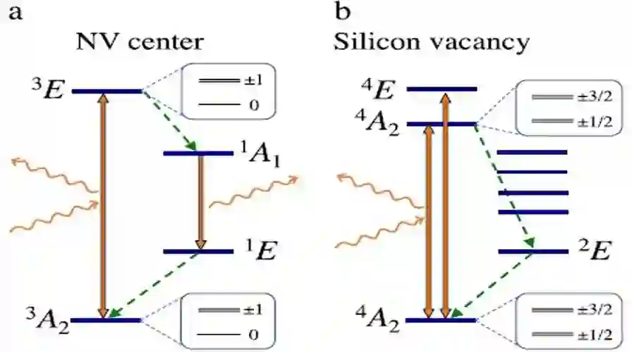 量子比特已经在各种物理系统中得到了证明。半导体中基于点缺陷的量子比特是最近才实现的一个目标,其中常见的顺磁点缺陷自旋或相关的顺磁核自旋的产生,可由电场和磁场、微波辐射和光学手段来操纵其量子态。由于点缺陷量子比特的独到特性和半导体主体材料的特性,现有的点缺陷量子比特与其环境隔离良好。这导致人们即使在室温下也能观察到一般长相干时间和量子比特操作。例如,在同位素工程高纯度金刚石样品中,相干时间在室温下可超过毫秒。这些属性以及磁光调控的可能性,使得点缺陷量子比特(包括单个或整体的隔离量子比特)有望应用于诸多领域。例如,在纳米晶或纳米薄膜样品表面附近产生的点缺陷量子比特,可用作原子级温度、电场、应变传感器,以及即将用以彻底改变纳米计量的磁共振探针。较大样本中的点缺陷量子比特的整合,可用于极大增强灵敏度的微型室温传感器和陀螺仪,其中一些可很容易地集成到现有半导体电子设备中。量子光学器件被广泛研究用于量子信息处理和测试量子纠缠的重要方面。实际上,无缺陷的贝尔测试就首先是由点缺陷量子比特来证明的。基于硅的量子计算可用单点缺陷自旋和量子点来实现。此外,点缺陷量子比特还可用于使其附近的核自旋极化,因而这些核极化源的集合,便可导致主体材料的超极化,这便能用于核磁共振成像,使其灵敏度增强几个数量级。