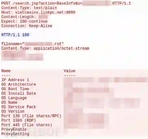 PowerRatankba与Ratankba作用相同:作为第一阶段网络侦察工具,并对感兴趣的目标部署后续植入程序。与其前身类似,PowerRatankba利用HTTP进行C&C通信,执行后,PowerRatankba首先通过BaseInfo HTTP POST方式,将包含计算机名称、IP、操作系统启动时间和安装日期、系统语言等感染设备详细信息发送到C&C服务器上。另外,PowerRatankba针对端口139、3389和445的打开/关闭/过滤,都有相应的进程执行列表,并且变体PowerRatankba.B还会通过WMIC命令执行输出。