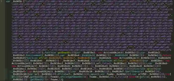 今年早些时候,攻击者在针对韩国的数起水坑攻击中,利用了M2Soft的ActiveX 0day漏洞来部署远控和植入程序,这些攻击中的一些技术与JS下载器和PowerRatankba的CHM线索重叠。在 M2Soft exploit和 PowerRatankba JS 下载器中都利用了同一种 JS 编码混淆技术,这种技术是把其十六进制值替换在形为_0x[a-f0-9]{4}的数组中: