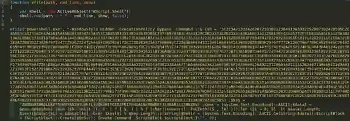 为了实现持久驻留,PowerRatankba.A会将一个JS文件appView.js保存到受害者的系统启动开始菜单中,每当受害者帐户登录系统时,该文件就会自动执行。持久化文件appView.js中包含XOR编码的PowerShell脚本,用于从硬编码URL中检索Base64编码的PowerShell命令,如URL地址脚本hxxp://macintosh.linkpc[.]net:8080/mainls.cs中,包含的XOR密钥为”ZWZBGMINRQLUSVTGHWVYANJHTVUHTLTUGKOHIYOXQEFEIPHNGACNKMBWGRTJIHRANIIZJNNZHVF”。下图为持久化文件appView.js: