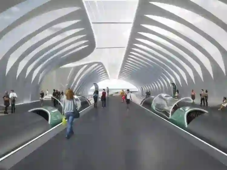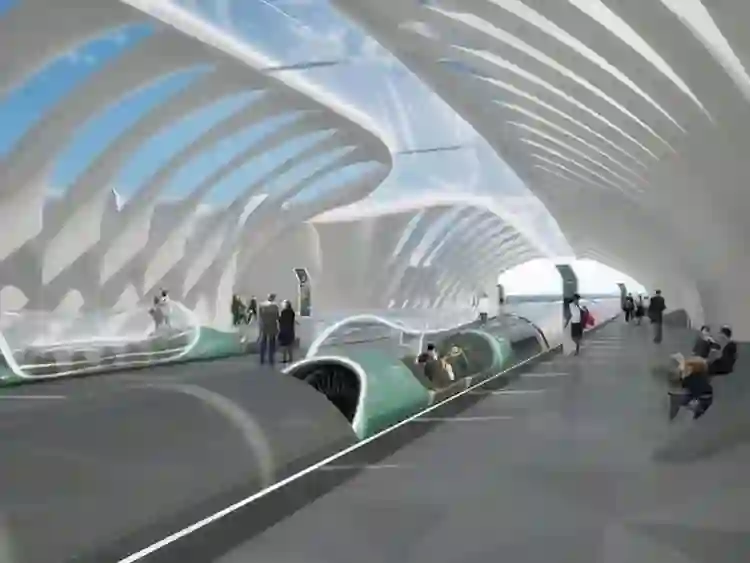 设想中的超级高铁车站的站台。欢迎关注材料科学与工程微信公众号。