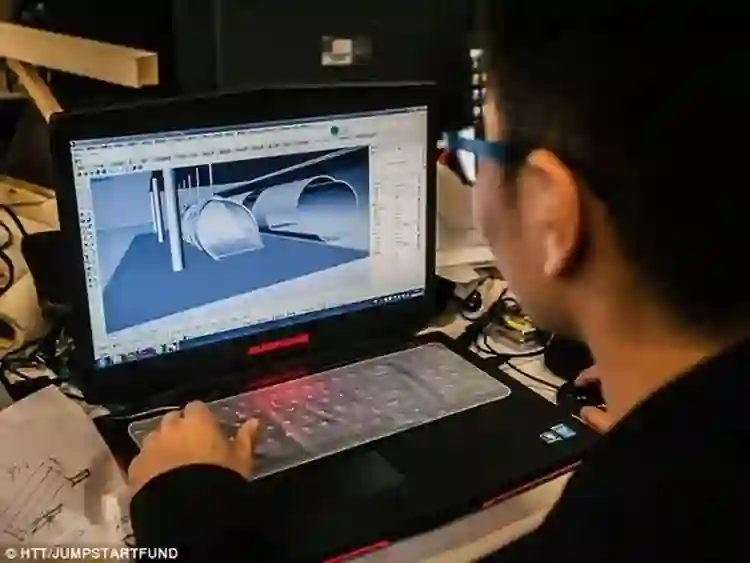 利用计算机进行三维实体设计的超级高铁列车模型:时速每小时1200公里,从旧金山到洛杉矶仅需35分钟。