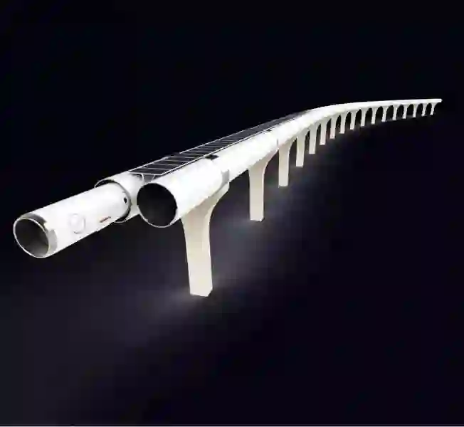 设想中的超级高铁轨道的管路,其上是太阳能板集热器。
