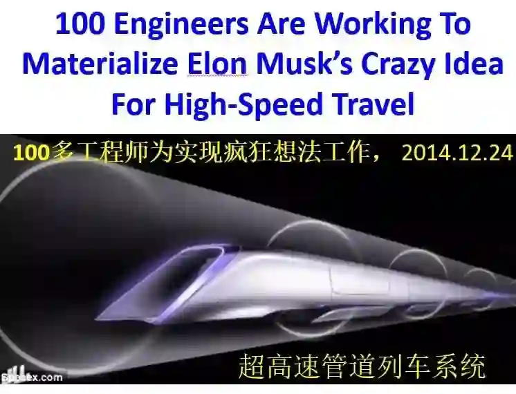 美国的特斯拉和空间探索技术公司的CEO埃隆.马斯克提出超级高铁(Hyperloop,超级环)设想计划。