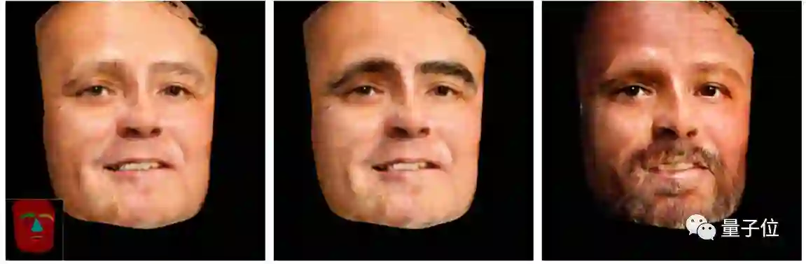 和街景类似,根据语义标注的人脸图像,我们可以选择组合人物的眼睛、眉毛和胡须等五官特征,还能在标注图上调整五官的大小。