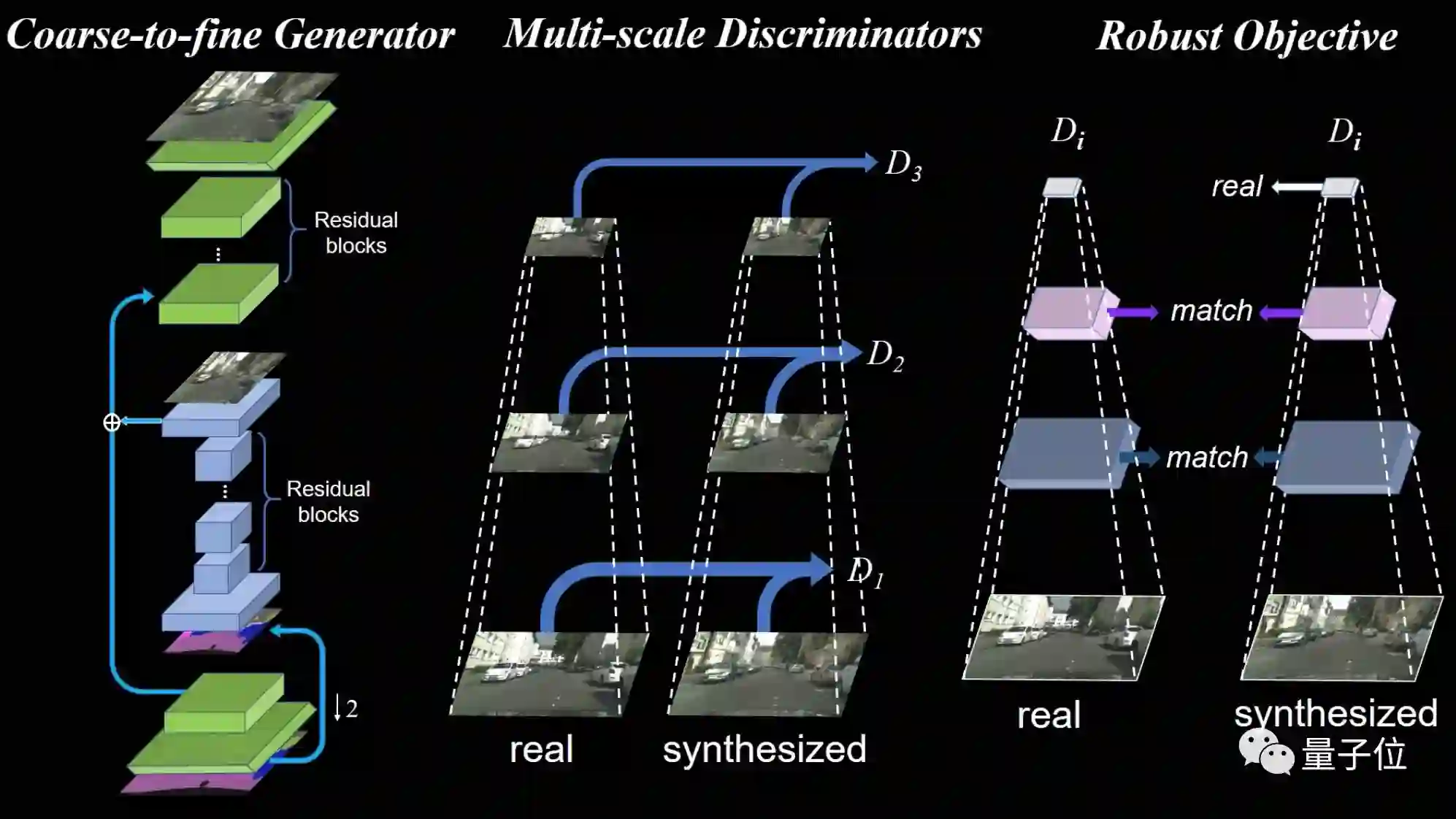 fine generator)”、一个多尺度鉴别器架构和一个健壮的对抗学习目标函数。