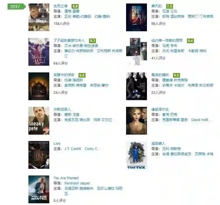 亚马逊工作室2017年出品的作品(数据来源:时光网)