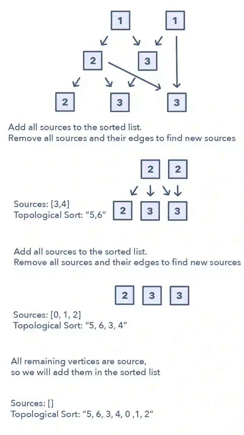 拓扑排序用于查找彼此依赖的元素的线性排序。例如,如果事件“B”依赖于事件“A”,则“A”在拓扑排序中位于“B”之前。流程大概是这样的:
