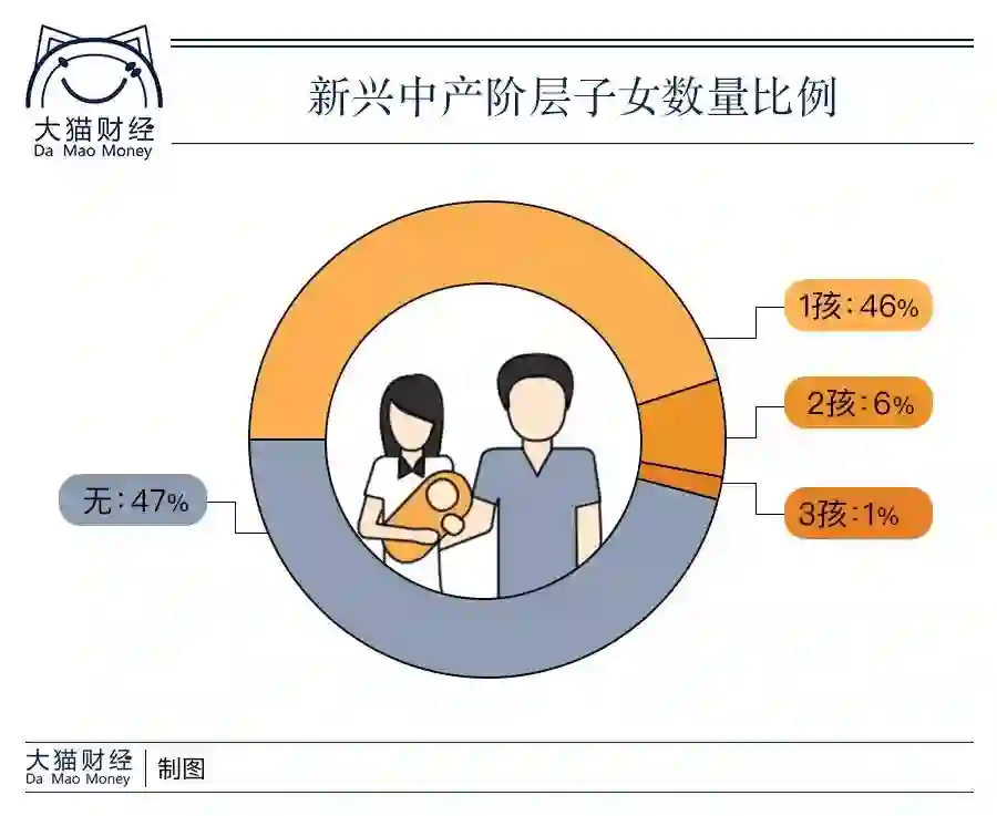 福布斯新发布的《2018中国新兴中产阶层财富白皮书》显示,符合中产标准的人群中,47%的人没有孩子,只有一个子女的人群比例基本与无子女人群平衡,达到46%,只有7%的人选择生二胎或者三胎等。