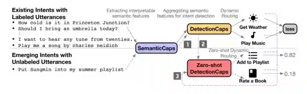 就在前不久,ACL 2018中就出现了相关研究,研究人员首先通过与训练方式提取文本信息,对其层次特征进行向量化处理。然后利用胶囊动态路由算法,将新的用户意图与已有用户意图之间的相似度进行对比,再将已有用户意图上的信息迁移至新的用户意图分类上,从而实现对新意图的预测。