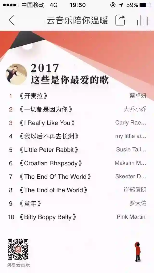 一个好的H5,一定需要注重传播性。传播性主要体现在以下2个方面,第一,传播细节的考虑,比如方便用户截屏分享,而截屏的每一页正好内容完整。第二,H5的内容具有传播性,比如同样是数据盘点,我觉得网易云音乐更走心,因为他结合用户听歌的场景,或清晨,或傍晚,或者说哪一首歌在哪天听的时间最长,更容易引发用户共鸣。