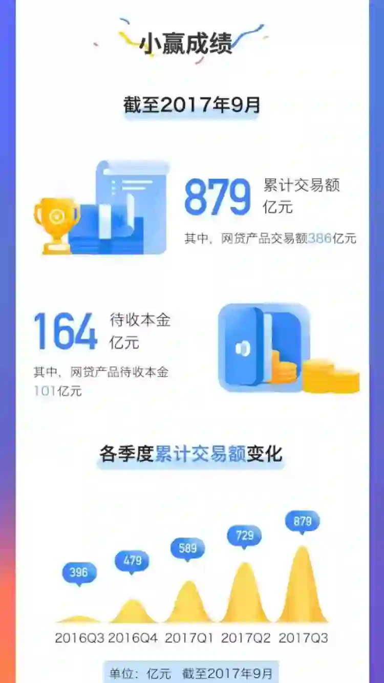 据大雄观察,尤其是一些互联网金融公司,喜欢从这个角度去进行年终盘点。比如之前小赢理财,就出过一个类似的盘点H5,突显了小赢理财(公司)在2017年取得的骄人战绩。