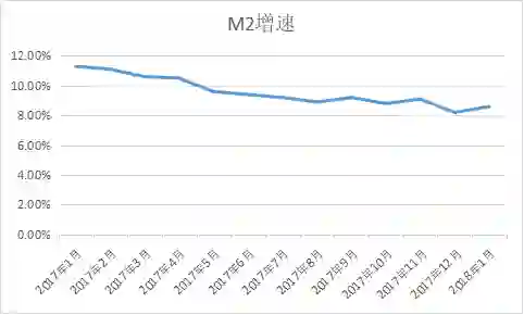 东方财富网数据显示,自2017年1月以来,M2的增速渐渐由同比11.3%降低到现在的8.6%,呈现明显的放缓趋势