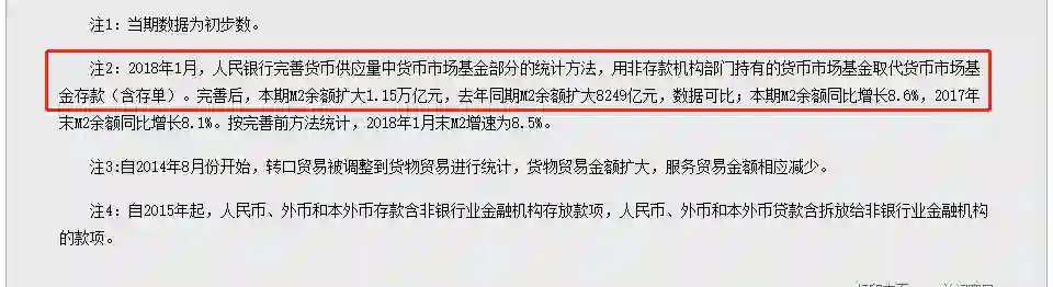 根据人行2018年2月12日发布的《2018年1月金融统计数据报告》,M2悄悄地扩大了统计范围: