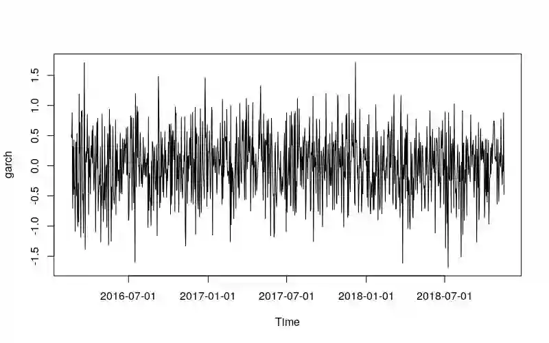 我听说有人们正对 GARCH 模型中的结构性变化进行假设检验研究,所以如果我在这里写到的数值不稳定性可以避免,我不会对此感到惊讶。这是一个我自认知之甚少的主题,如果 R 社区中的某个人已经观察到了这种行为并且知道如何解决它,我希望他们会在评论或电子邮件中告诉我。我可以写一个回复并展示如何使用 garchFit() 生成参数的稳定估计。也许关键在于函数 garchFitControl()。
