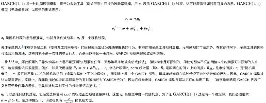 1、Bollerslev 在他 1986 年的文章(《General autoregressive conditional heteroscedasticity》)中介绍了 GARCH 模型。