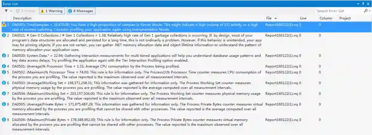 代码问题定位,优先推荐使用VS自带的Performance Analysis,其次是RedGate的性能分析套件.NET Developer Bundle(http://www.red-gate.com/products/dotnet-development/dotnet-developer-bundle/);然后还有Jet Brains的dotTrace -- .NET performance profiler,dotMemory-- .NET memory profiler;再然后就是反人类的Windbg;等等。