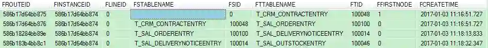 这个报表是用来跟踪所有单据从下单到出库的业务流程数据流转情况。而所有的流程数据都是按照树形结果存储在数据库表中的,类似这样: