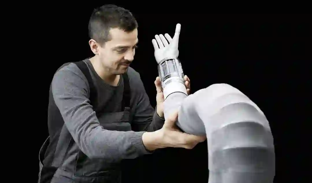 首先,是费斯托的气动机械手,虽然它比其他仿生手看起来更像人手,但却有着和人类手掌完全不一样的结构,因为它没有骨骼,完全依靠手指上的气动波纹管结构来控制动作。当气室充满空气时,手指弯曲;气室排空时,手指呈伸展状态。