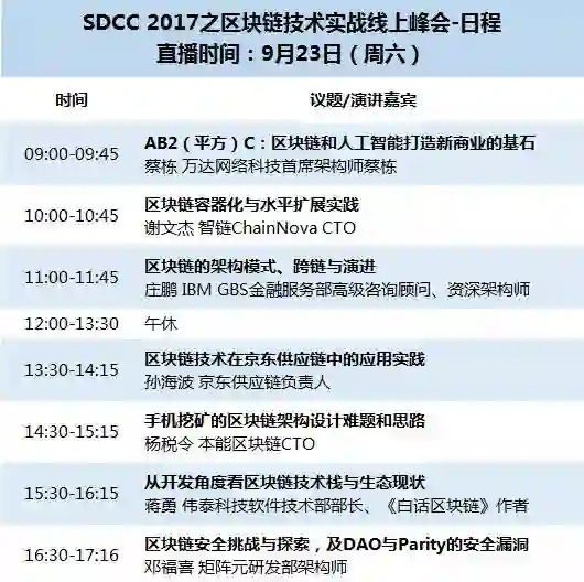 SDCC 2017之区块链技术实战线上峰会日程安排表