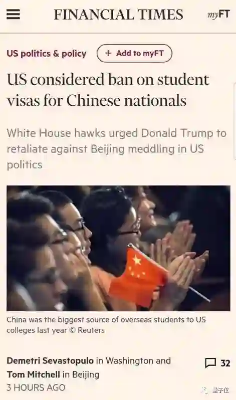 据金融时报刚刚发出的报道,美国政府正在考虑禁止中国公民获得学生签证。