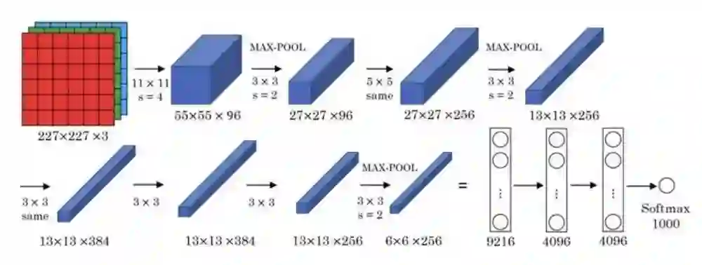 这个结构包括5个卷积层和3个全连接层。这八层也都采用了当时的两个新概念——最大池化和Relu激活来为模型提供优势。