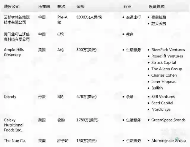 海外科技行业的投融资总额约3208万美元,单笔最大交易事件发生在生活服务行业,获得融资的企业为Galaxy Nutritional Foods Inc.,交易金额高达1780万美元。