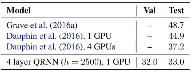语言建模的许多方法都具有新奇复杂的结构。我们采用现有的基于LSTM和QRNN的最先进的词级语言模型,并将它们扩展到更大的词汇表及字符级模型中。经过适当调整后,LSTM和QRNN分别在字符级数据集(Penn Tree-bank, enwik8)和单词级数据集(WikiText-103)上表现出了最佳结果。只用一个GPU,在12小时至2天的时间里即获得了结果。