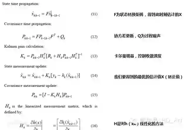EKF算法通过对观测量yk的更新,获得对状态向量Xk估计,他们满足如下关系