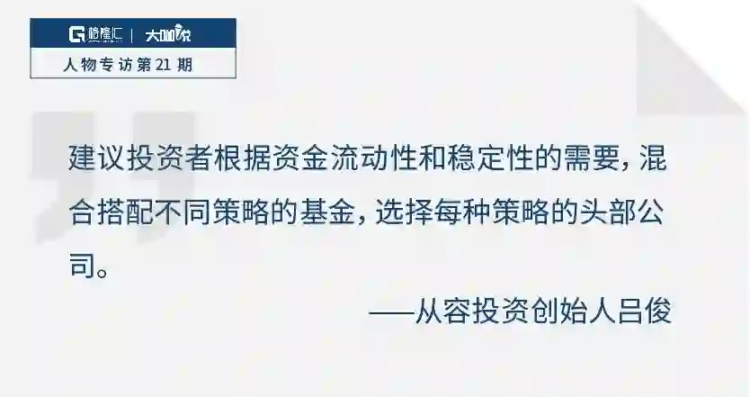 建议投资者也要多元配置,根据资金流动性和稳定性的需要,混合搭配不同策略的基金,选择每种策略的头部公司。首先是根据流动性的需要进行搭配,确保急需用钱的时候能在较短时间内变现。其次要确保稳定性,混合多种策略分散风险。如果只买多头策略,那在熊市就要承担较大的风险。第三就是要选择头部公司,不要抄底长期表现一般的基金,它涨回去的概率并不高。头部公司即使有回撤,也一定能走出谷底,长期来讲有一个更好的回报。