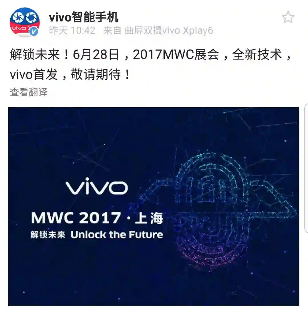 而是,近日在微博发出上海 MWC 大会邀请函的手机厂商 —— vivo。