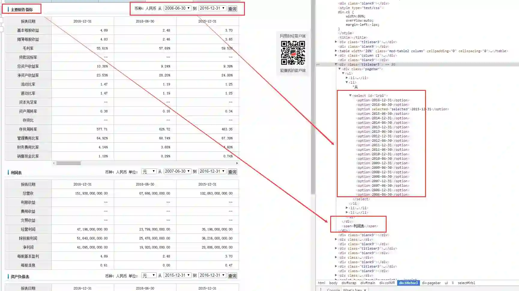 从图中可以看到,该网站提供了财务数据在线浏览功能,但是没有提供财务报表下载功能,如何将每年的财务数据获取,并存入数据库,方便我们后续的分析呢?没错,这就是本文的主题:财务报表爬取入库。