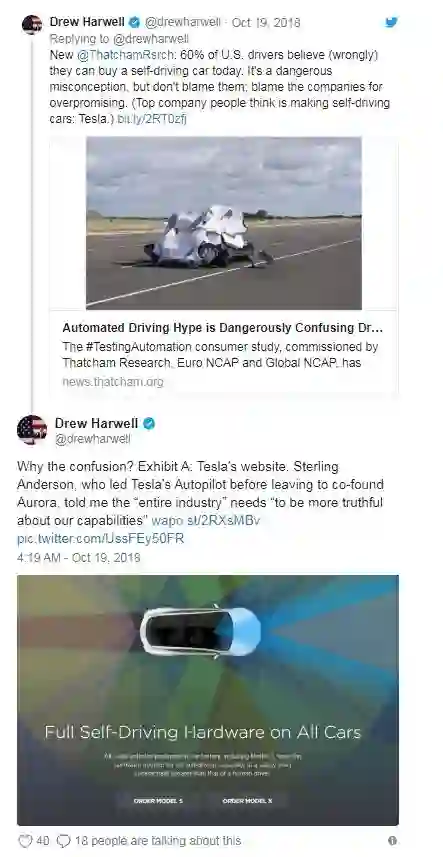 三年前马斯克声称,特斯拉汽车已准备就绪,可以在2017年之前实现完全自动驾驶,无须人为干预。两年前马斯克宣布,未来制造的每一辆特斯拉汽车都会拥有实现这个目标所必需的硬件。此后多年来,特斯拉一直在公司网站上大力宣传这一即将到来的突破,声称这是购买新车的一项附赠服务,只需要多花几千美元以及一点点耐心。