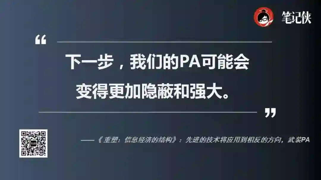 下一步,我们的PA可能会变得更加隐蔽和强大,到那时,智能手机会成为PA的前端界面,而PA的数据则存储在商业云中。