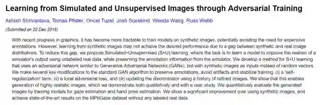 这篇论文的标题为“Learning from Simulated and Unsupervised Images through Adversarial Training”(《通过对抗训练从模拟的和无监督的图像中学习》),第一作者是苹果深度学习研究院 Ashish Shrivastava ,已经被 CVPR 2017 收录。