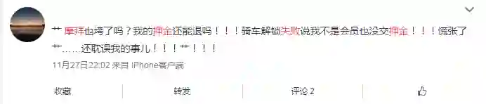同时,摩拜单车呼吁共享单车行业重视用户利益,确保用户押金安全、可退。