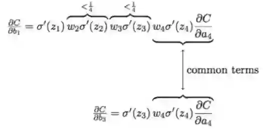 下面我们从公式上比较一下第三层和第一层神经元的学习速率:
