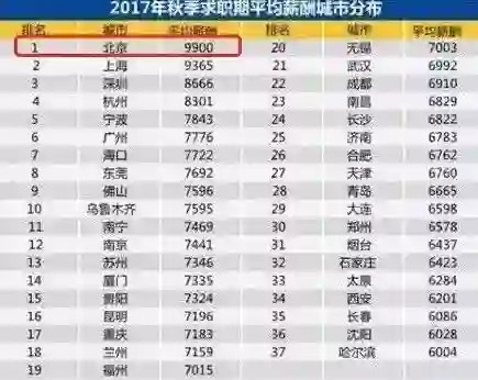 近日,某招聘网站报告显示,今年秋季,全国37个主要城市的白领平均招聘月薪为7599元。其中,北京的平均月薪最高,达到9900元,接近1万。