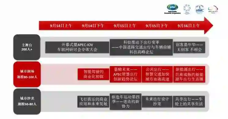 此外,值得注意的是,这届 MMC 智慧出行体验周上还会有多家公司的新品首次公开展示。除了全新品牌、新产品的展示体验,与智慧出行体验周一道举行的第四届APEC车联网研讨会还有多场大戏: