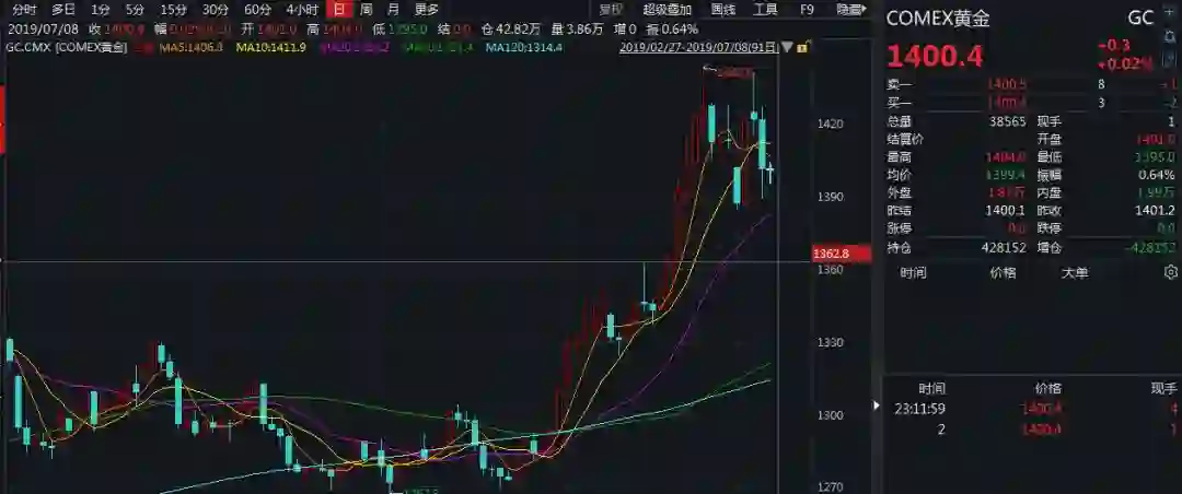 黄金市场亦大幅走低。