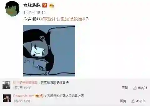 微博博主“洗脉洗脉”曾发起过一个话题:“你有什么不敢让父母知道的事情?”