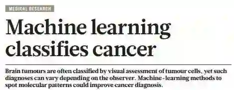 来自美国、德国、意大利等100多个实验室的近150位科学家通力合作,联合在顶级期刊《自然》发表了这篇文章,他们开发了一个超级AI系统,该系统基于肿瘤组织DNA的甲基化数据,可以准确区分近100种不同的中枢神经系统肿瘤。更厉害的是,这个AI系统还能自学成才,发现一些临床指南里面没有的新分类。