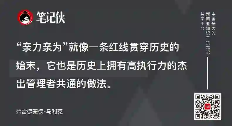 纵观历史,“亲力亲为”就像一条红线贯穿历史的始末,它也是历史上拥有高执行力的杰出管理者共通的做法。