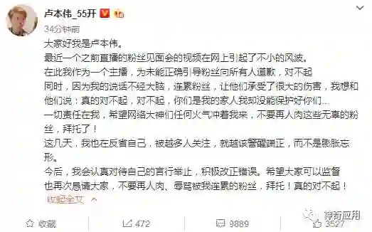事件在今天12月8日卢本伟的道歉声明里告一段落。