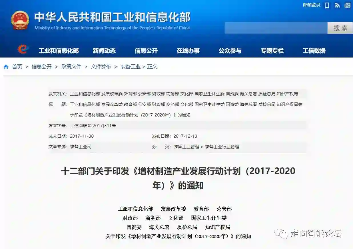《增材制造产业发展行动计划(2017-2020年)》印发(附解读)