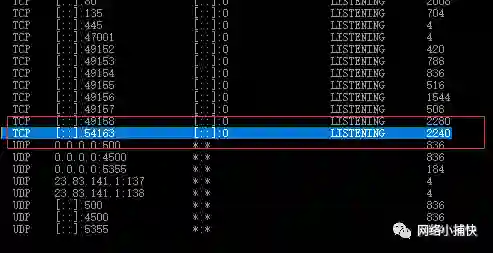 找到2240对应的端口号是54163 我们连接
