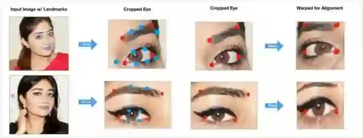 通过获得单张照片中人眼的高质量数学表示,研究人员就能找出人物眼睛构造的相似性,这就为只根据人的眼睛,为他/她匹配合适的眼妆风格打下了基础。